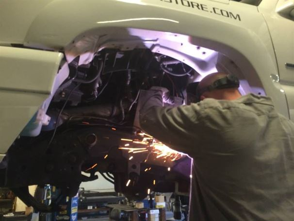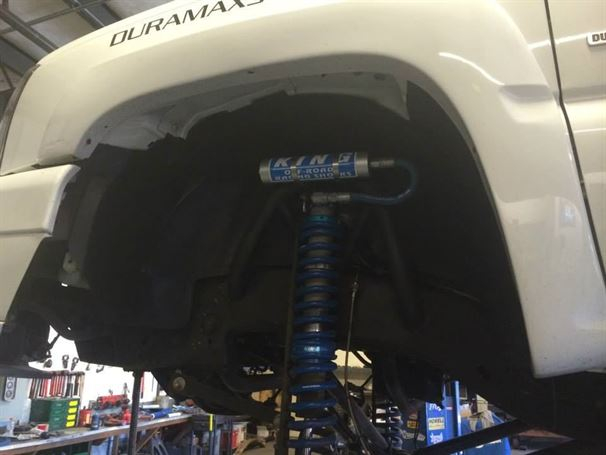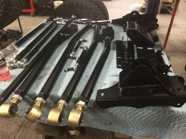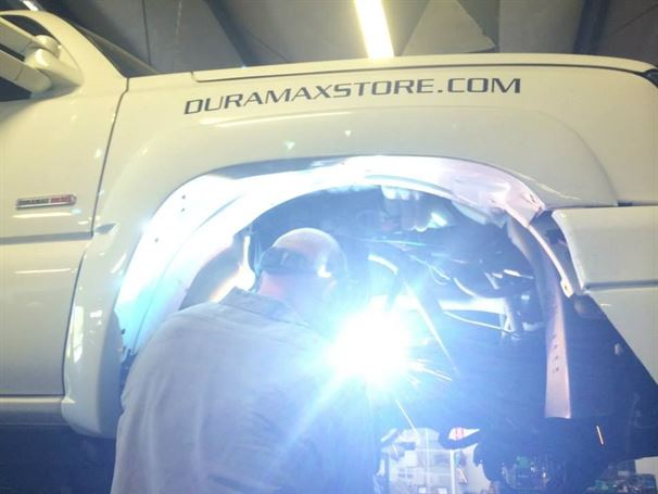 We have been working with Mike, the owner of the Duramax Store, for years. When we met him years ago, his truck was one of the first solid axle Duramax trucks we had ever seen. We swapped out his ORU leaf spring setup for 4 link and King Coil-overs. On this round, Mike wanted to update his "OLD and outdated" 4 link with our new modular shock towers and cross-member. There is nothing like doing a solid axle swap on the same truck for the 3rd time!