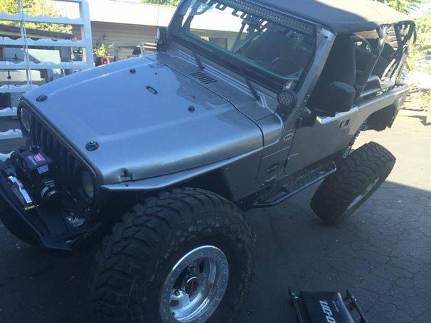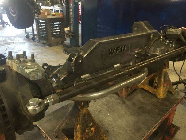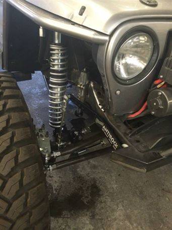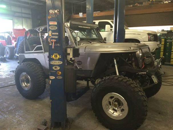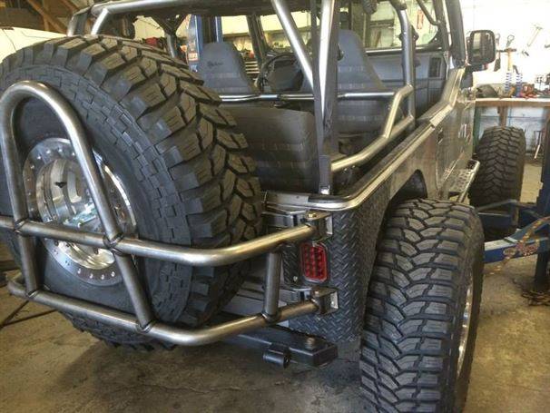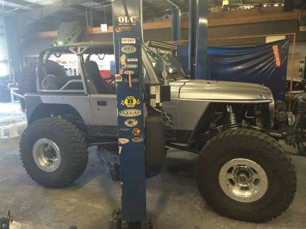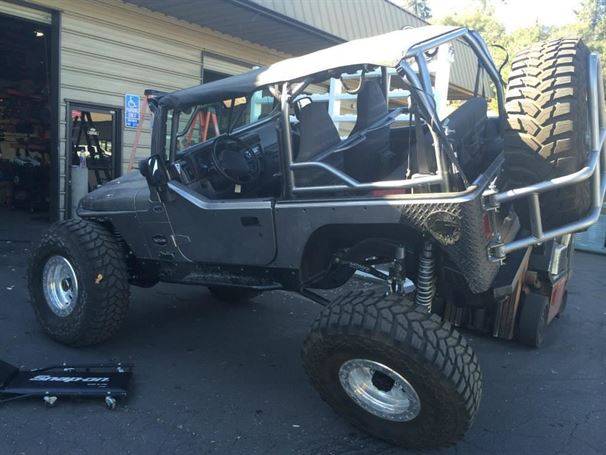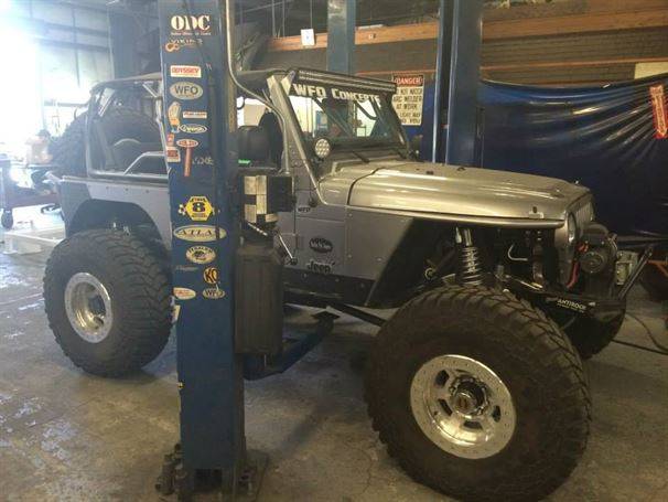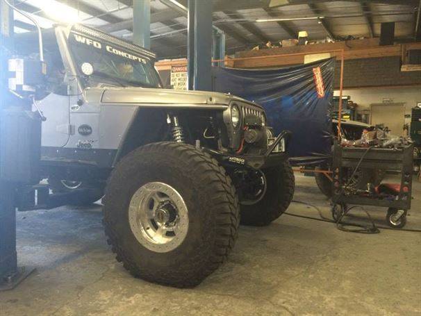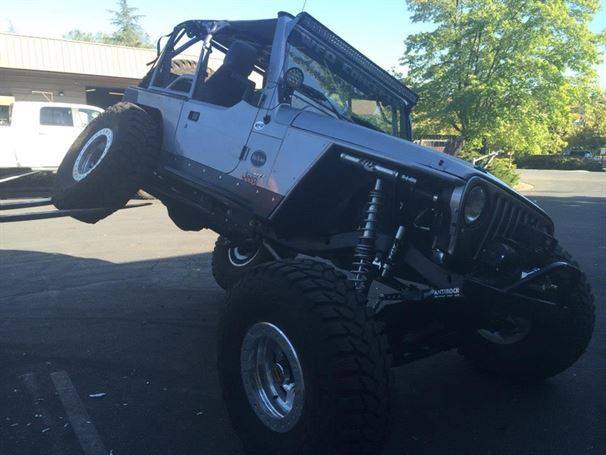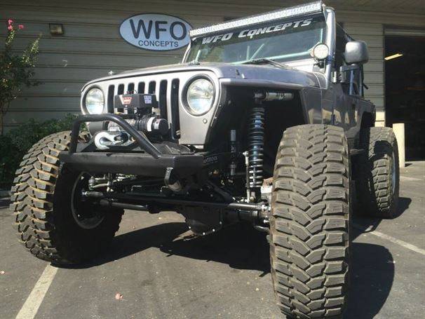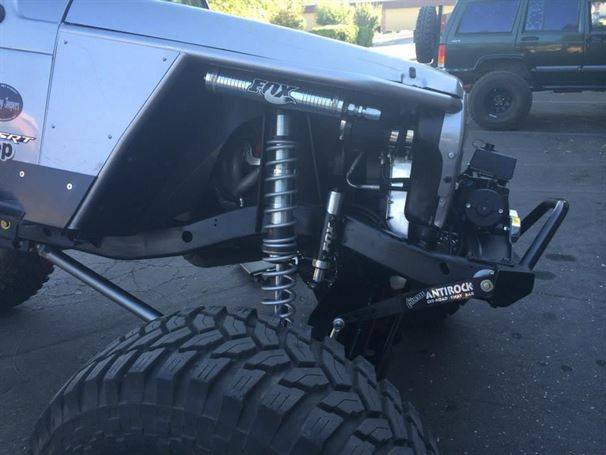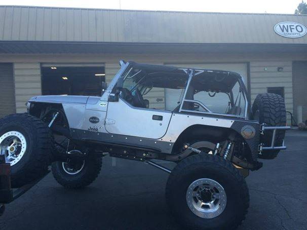 WFO’s LOW DOWN linked TJ on 40’s! Stretch front and rear on 40’s and 1 tons! 360 Mopar V8 Swap. Here are a few pictures of our truss and link kit with Fox Coil-overs riding low with 6" of up-travel, high line fenders.