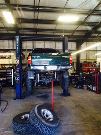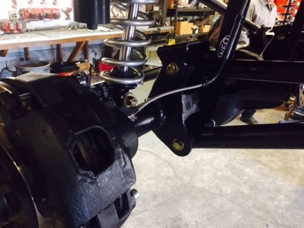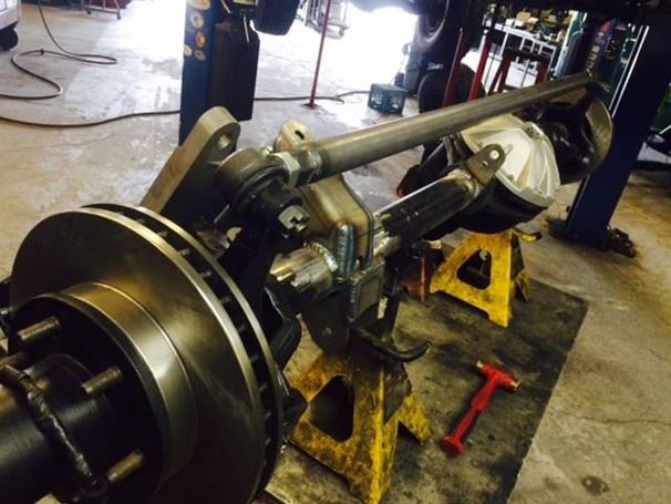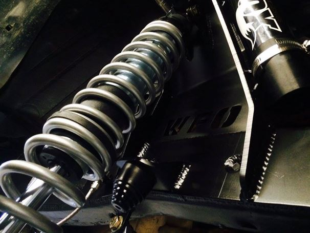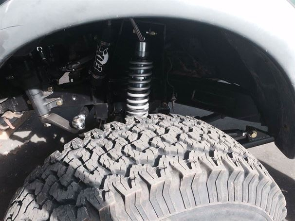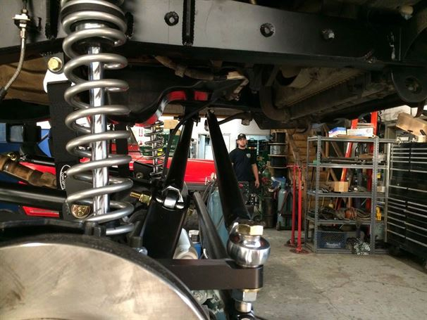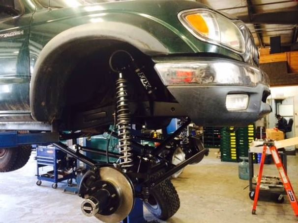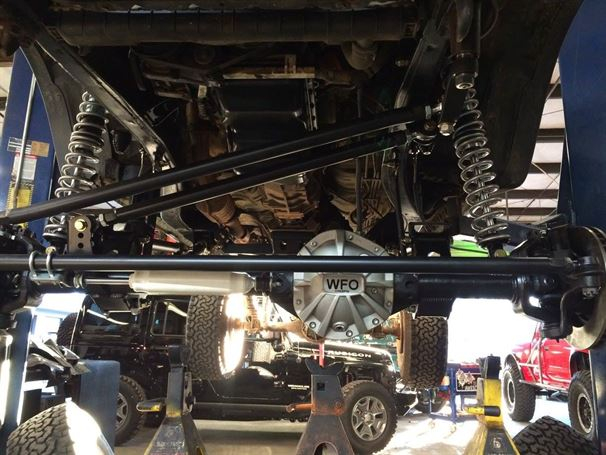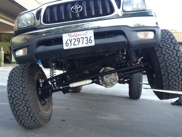 Another solid axle Tacoma out the door at WFO. We used our radius arm kit on a 76 full width Ford 1/2 ton high pinion 44 front axle, with Chevy 6 lug outers, and Fox 10"x2.0 Coil-overs. It sits on 35" tires and drives great! In and out of the shop in less than a week! The stock front driveline even bolted right back in.