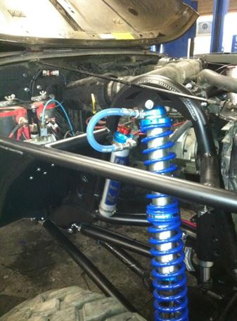 Clint’s front leaf springs were working just fine. But it was time to step it up a notch with a whole new front half! New front frame, 4 link, WFO truss, King bypass coilovers...