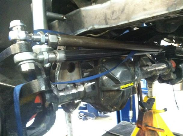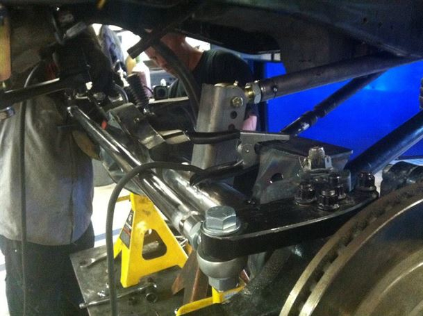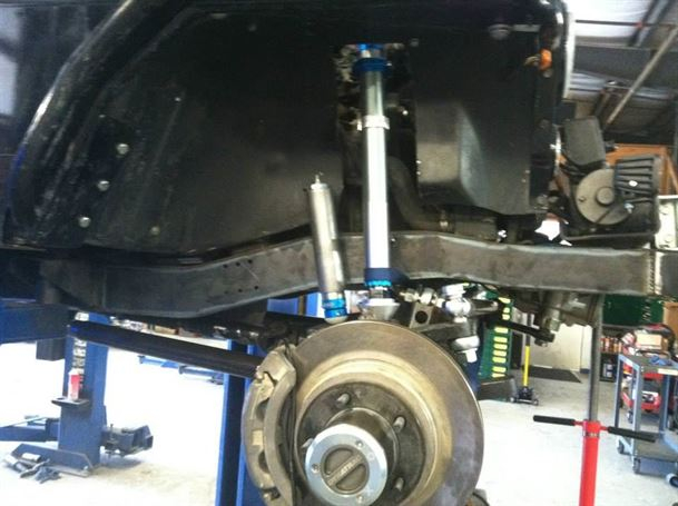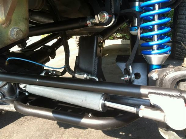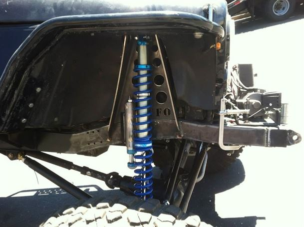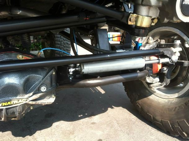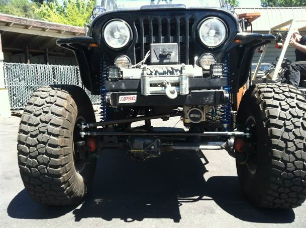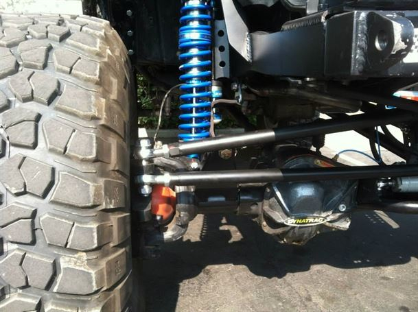 Steve’s new Dana 60 front axle and 40" tires were too much for the stock 2" front leaf springs. The springs were bending and breaking every time Steve went off road. It was time to upgrade to a 3 link front end complete with King Coil Overs!