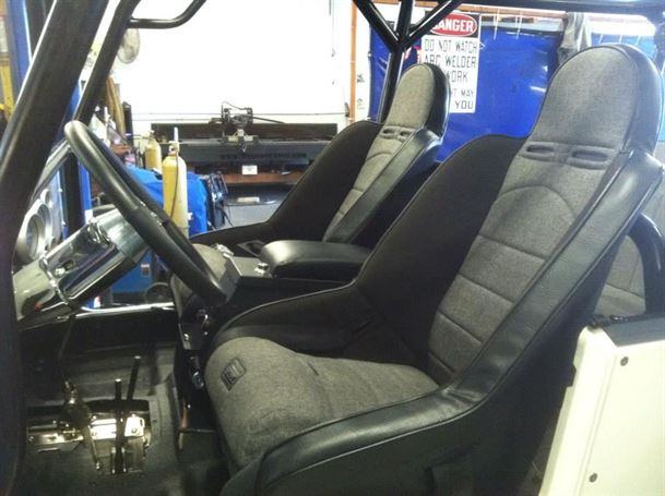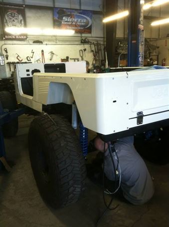 David listened to our ideas - and then let us do everything we suggested! The Jeep came out awesome! It was a crazy 3 month build. Its a daily driver Scrambler buggy that is linked on 42" MTRs and one ton axles with heated seats and a soft top for winter road trips to Reno! 5.13 gears, ARBs, Hydro assist, Kings, etc!