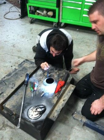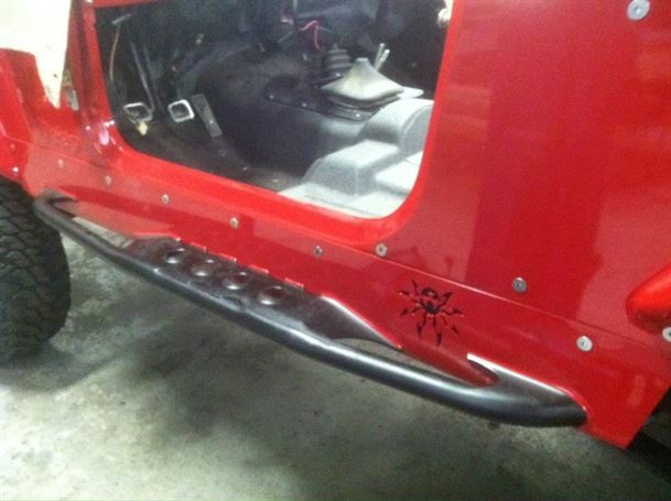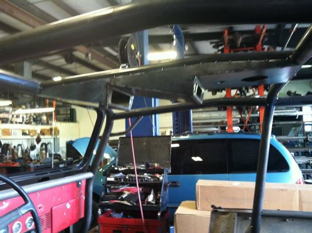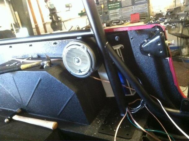 We started with new rear fender wells and new custom floor panels to make room for the wider rear seat and speaker box. The stereo system was stocked with all new JL Audio components. For the seats, we went with Mastercraft. The roll cage was built from 1 3/4"x.120 wall DOM!