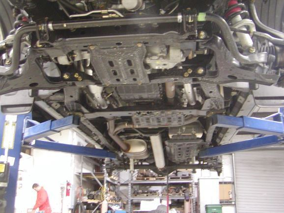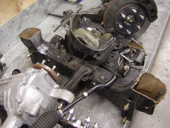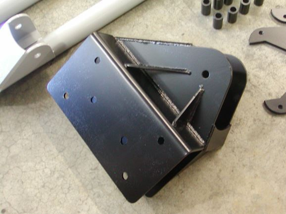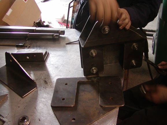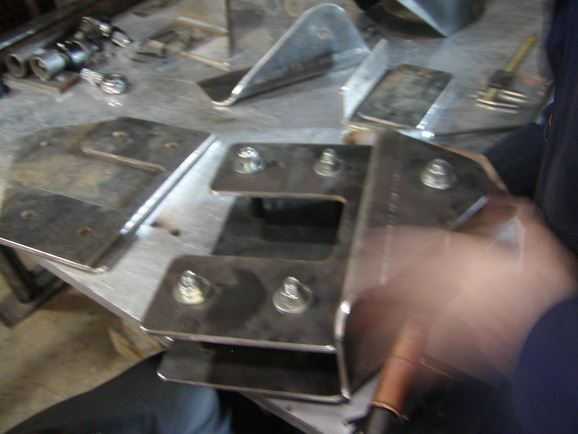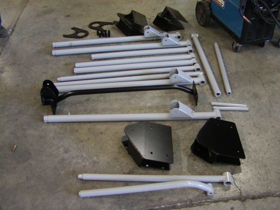 The lower links were built from 2"x.250 wall DOM tubing. Poly bushings were used at the frame end to help eliminate road noise, while 1.25"x1" FK heim joints were used at the axle ends. WFO weld in inserts were used to attach the lower heim joints. All inserts were tig welded in. The adjustable upper links also had poly bushing at the frame side, and 1.25"x1" heim joints at the axle end. They were built from 1 7/8"x.250 DOM tubing. All of the upper mounting brackets on the frame were also designed on the computer, and water-jet cut from " steel plate. The brackets, were cut out, assembled, and welded together.