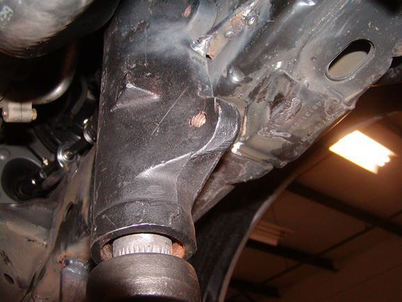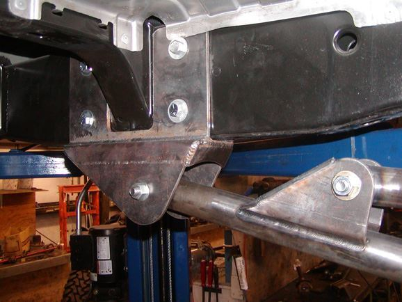 While Phil finished tig welded the links together, Beau mounted the brackets to the frame. All brackets were mounted using at least one existing hole to locate them. DOM sleeves were welded inside the frame rails to keep it from smashing. The front and rear brackets and links were basically the same design.