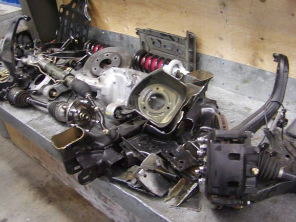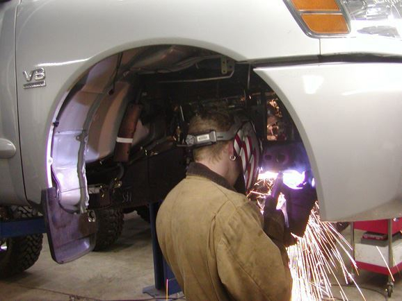 On the first day, we put the Titan up on the rack and checked it out. We couldn’t help but notice the quality of the components and design in the front end. The stock suspension design was actually pretty strong. It just wasn’t going to work for us. We attacked the truck with the plasma cutter! The pile of parts we removed quickly grew. In a few hours, most of the cutting was done. Out came the Grinder.