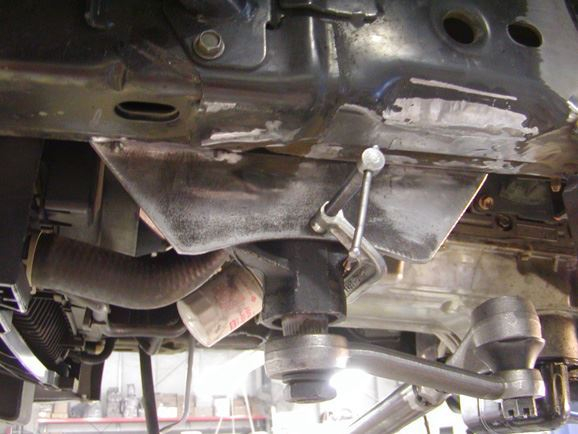 With the rear axle finished, it was time to tackle the power steering situation. The stock Titan steering uses a rack and pinion type steering. This style of steering will not work with a straight axle. We needed to find a power steering gear box to mount on the frame rail. Phil finished cutting off all of the IFS mounts and cleaned up the frame rails, while I searched though my Napa books to find a steering box that would fit our application.