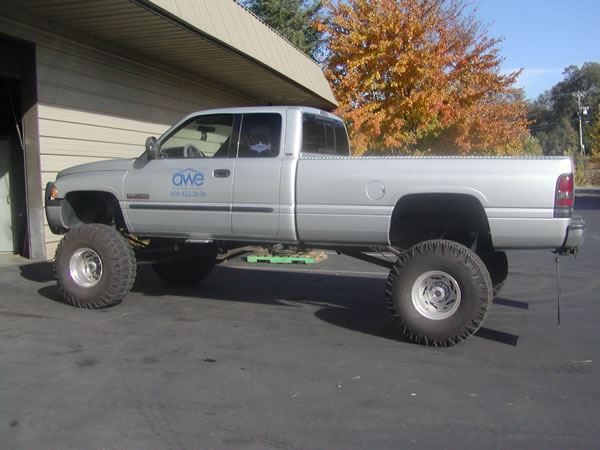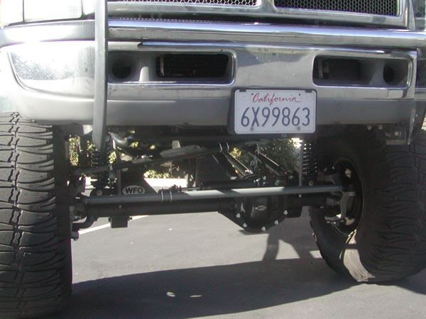After numerous driveline problems, and major handling problems, somebody mentioned to Brent that he should give WFO a call. I happened to be down in his area for a wedding, so I stopped by to check his truck out. I quickly noticed a few things that I didn’t like. The main problem was the driveline. Dodge trucks do not have locking hubs, so the driveline spins at all times.