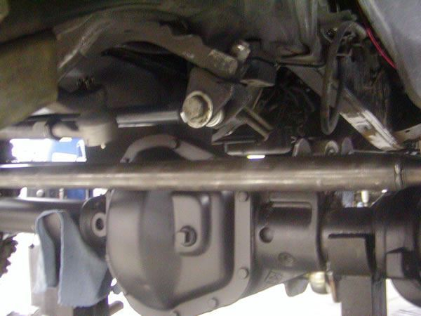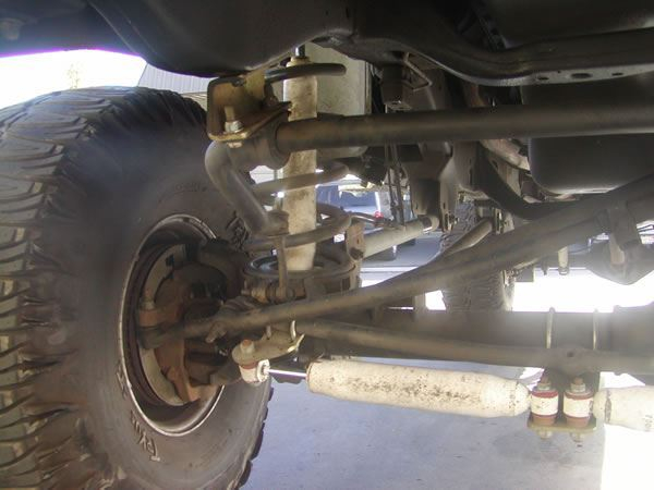 With all other components working correctly, we finally attacked the sway bar. We found that our best bet was to bolt the sway bar in the original position. From there, we custom bent some drop down links, in order to clear the draglink and tie-rod. New link mounts were then welded to the axle tube. New rubber bushings were used on the ends of the new sway-bar links.