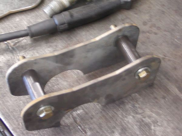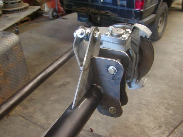 We did decide to modify and use the existing Whiplash links and brackets. The links had rubber bushings at each end, and were not adjustable. Instead, they had slots in the brackets, and adjustable cams. This style of adjustment tends to work loose. We wanted something a little stronger, so we decided to make the frame end of the links fixed, and the lower end accept adjustable heims.